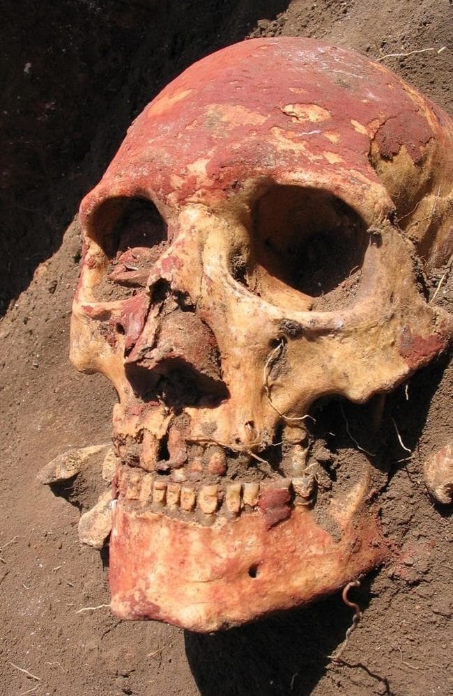 Yamnaya-skull from Samara region coloured with red ochre. (Photo: Natalia Shishlina)